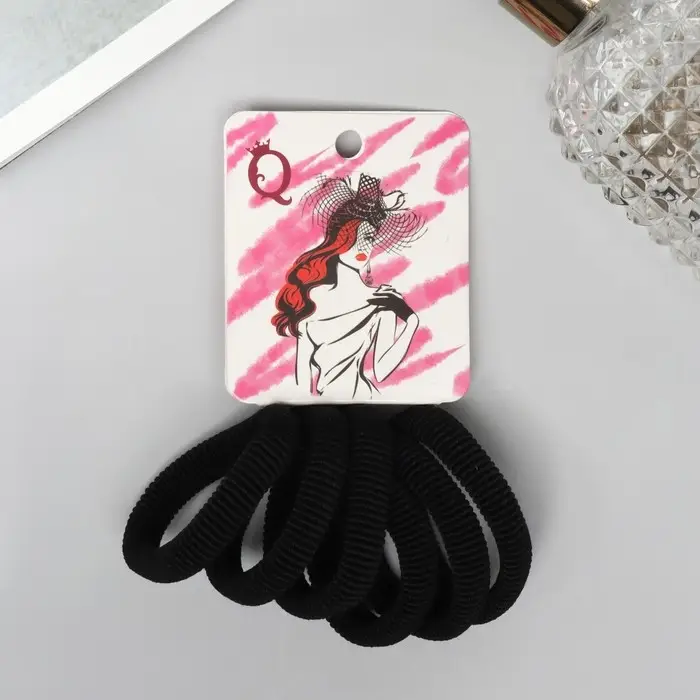Резинка для волос "Амелия" (набор 6 шт) загадка, 4 см, чёрный