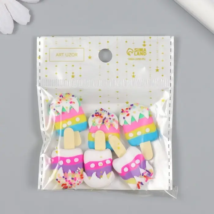 Декор для творчества пластик "Эскимо с посыпкой" МИКС 3,4х2,8х0,7 см