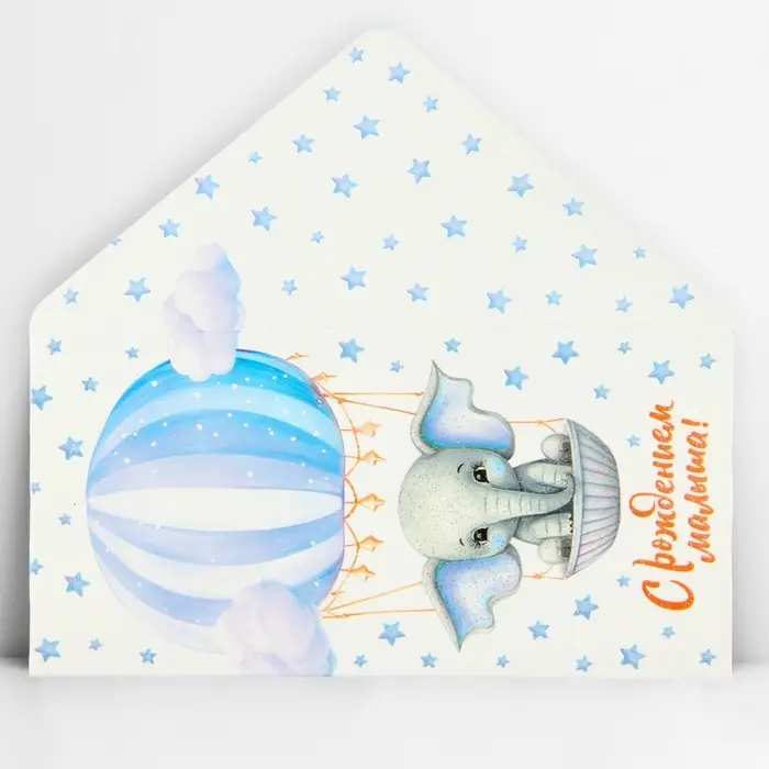 Конверт для денег «С рождением малыша», слоник, глиттер, 16.5 х 8 см