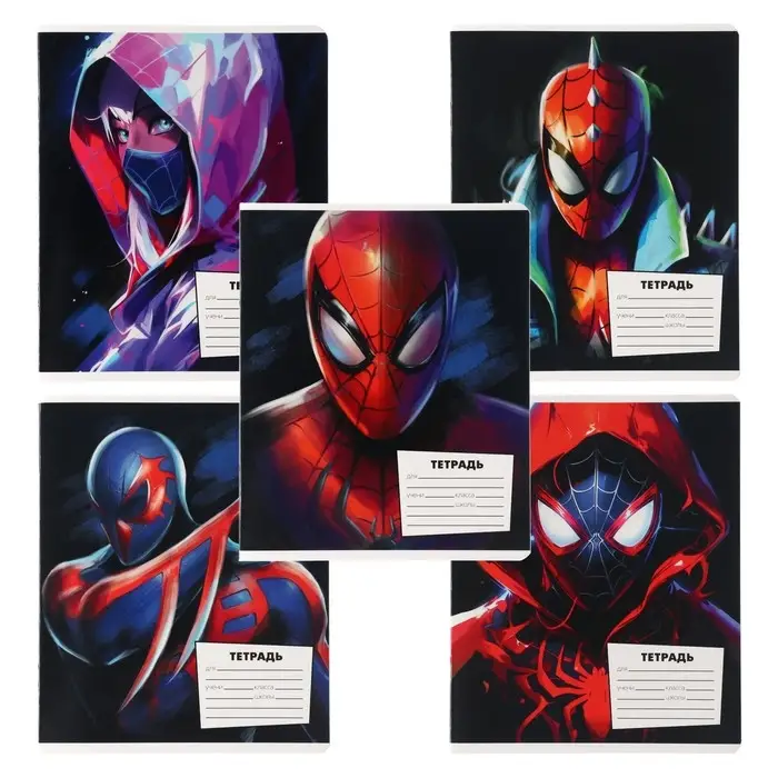 Тетрадь в линейку 18 листов, 5 видов МИКС, обложка мелованный картон, «Человек-паук»