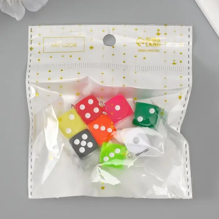 Подвеска для творчества пластик "Игральные кости" МИКС 2,4х1,4х1,4 см