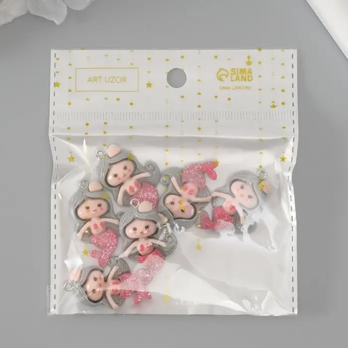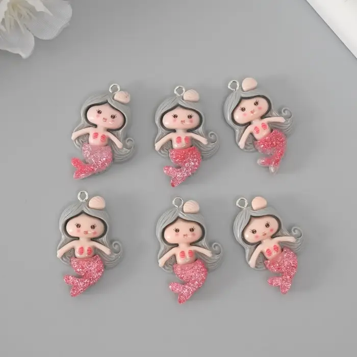 Подвеска для творчества пластик "Русалочка с серыми волосами" 3,4х2,1х0,6 см