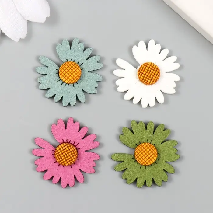 Декор для творчества иск. замша "Цветная ромашка" МИКС 2,5х2,5 см