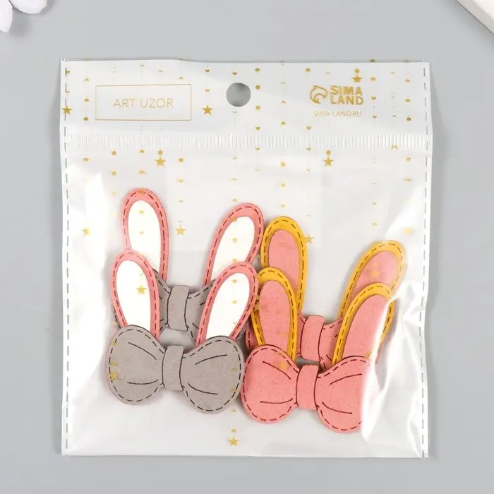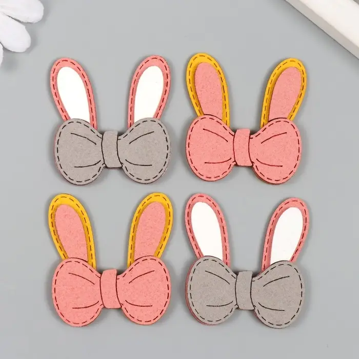 Декор для творчества иск. замша "Бантик с зайчьими ушками" МИКС 4,5х5 см