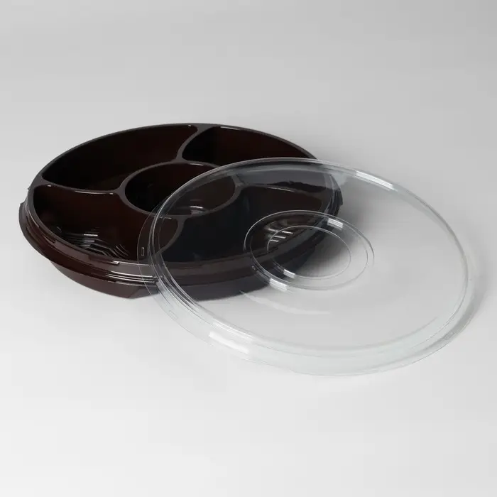 Менажница пластиковая одноразовая, d=26×4,2 см, 5 секций, дно, круглая, цвет коричневый