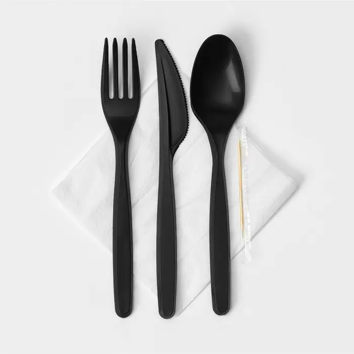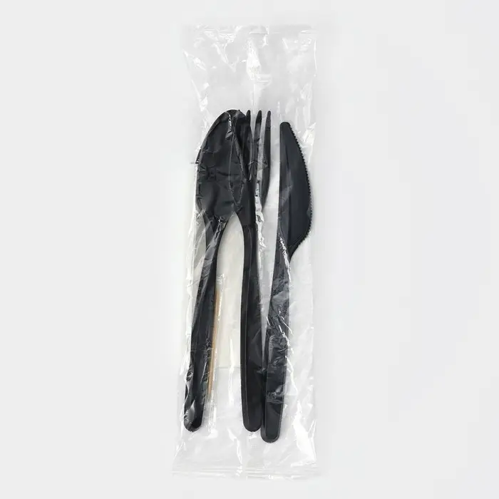 Набор пластиковых одноразовых столовых приборов «Элит», 5 предметов: вилка, ложка, нож, зубочистка, салфетка, 18 см, чёрный