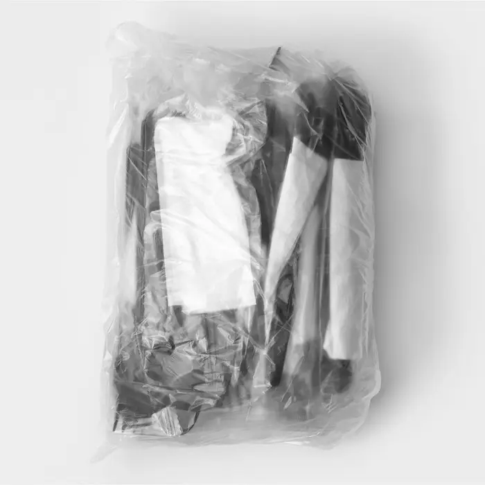 Набор пластиковых одноразовых столовых приборов 5 в 1: вилка, ложка, нож, салфетка, зубочистка, цвет белый