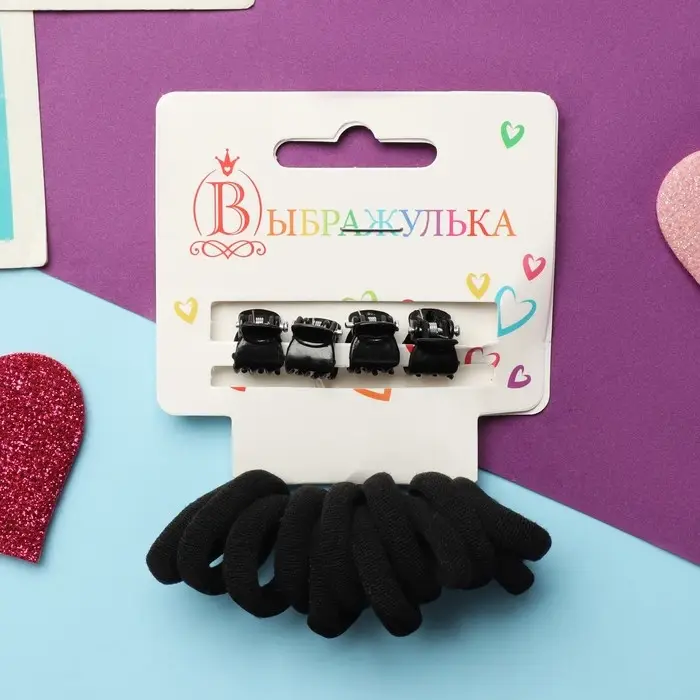 Набор для волос "Затейница" (12 резинок 2 см, 4 краба) классика, чёрный