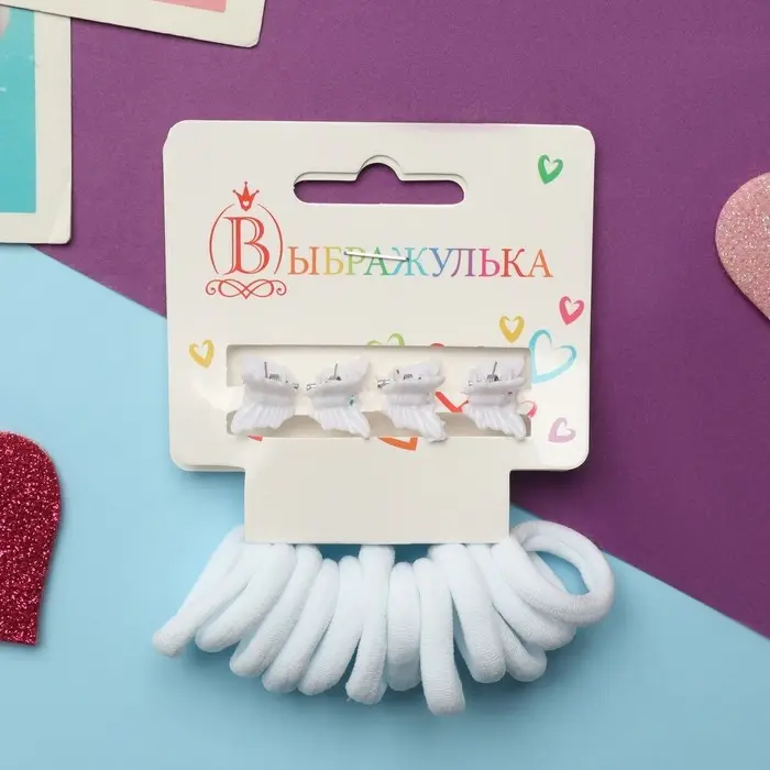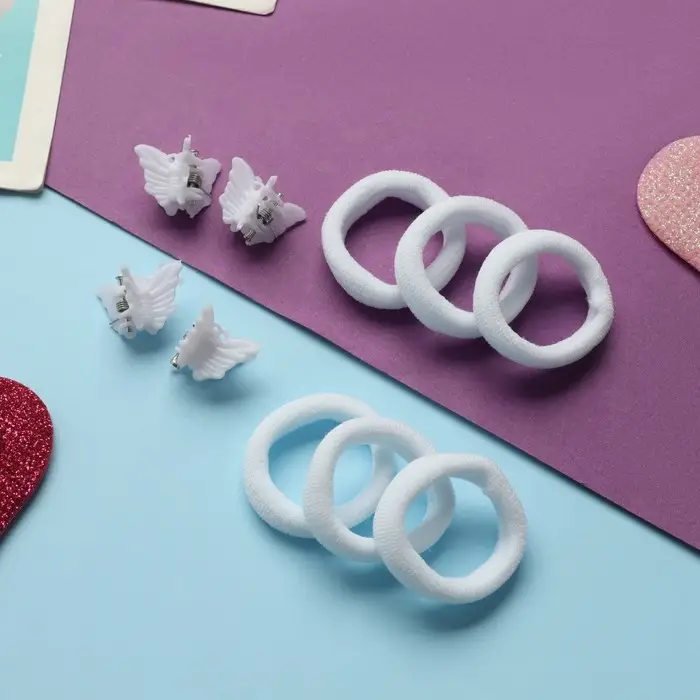 Набор для волос "Затейница" (12 резинок 2 см, 4 краба) бабочки, белый