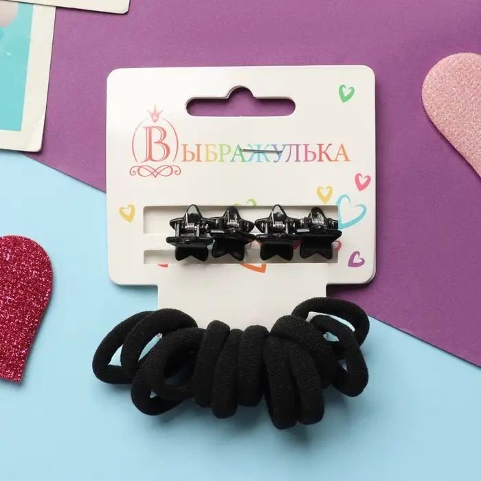 Набор для волос "Затейница" (12 резинок 2 см, 4 краба) звёздочки, чёрный
