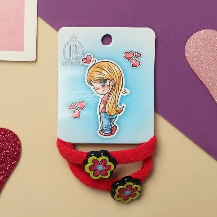 Резинка для волос "Нежность" (набор 2 шт) цветочек, 4 см, красный
