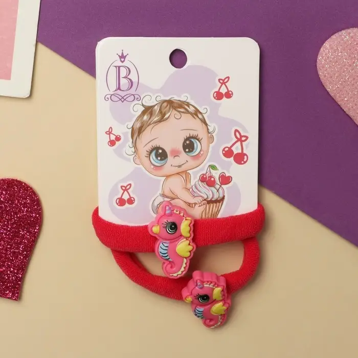 Резинка для волос "Пупсёнок" (набор 2 шт) морской конёк, 4 см, розовый