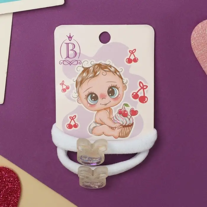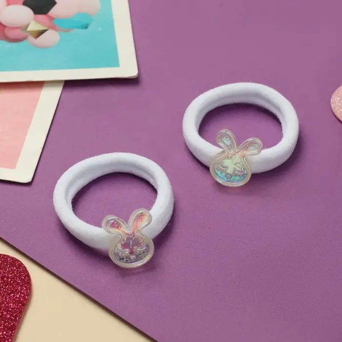 Резинка для волос "Пупсёнок" (набор 2 шт) зайчик, 4 см, белый