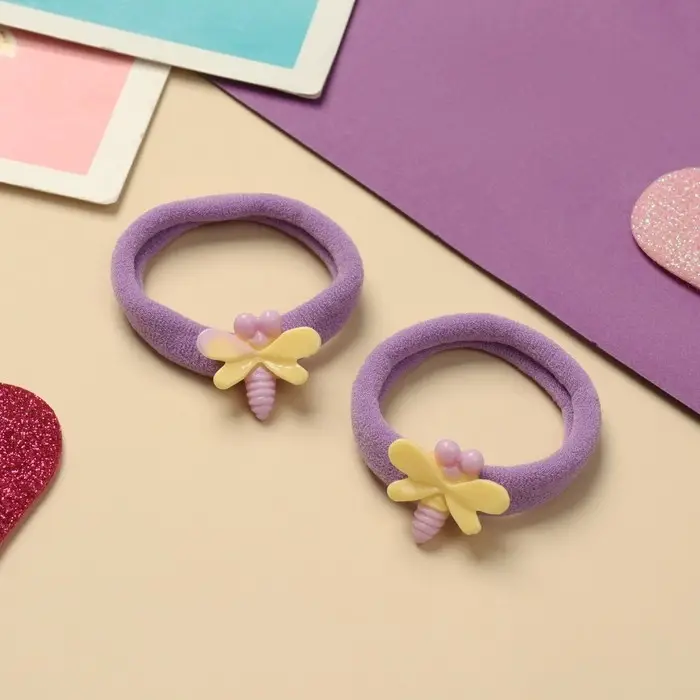 Резинка для волос "Фея" (набор 2 шт) стрекоза, 4 см, сиреневый