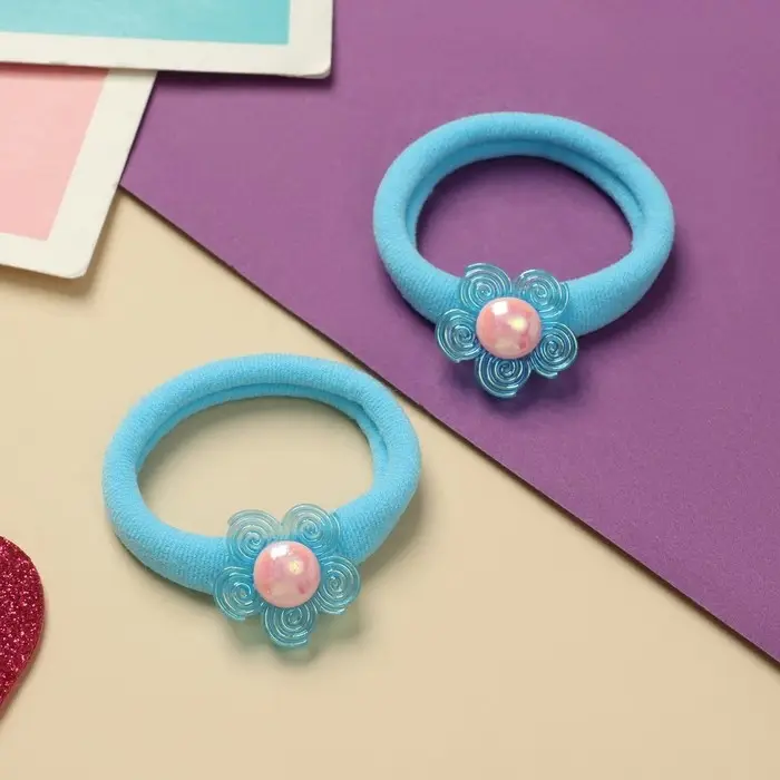 Резинка для волос "Фея" (набор 2 шт) цветочек, 4 см, голубой