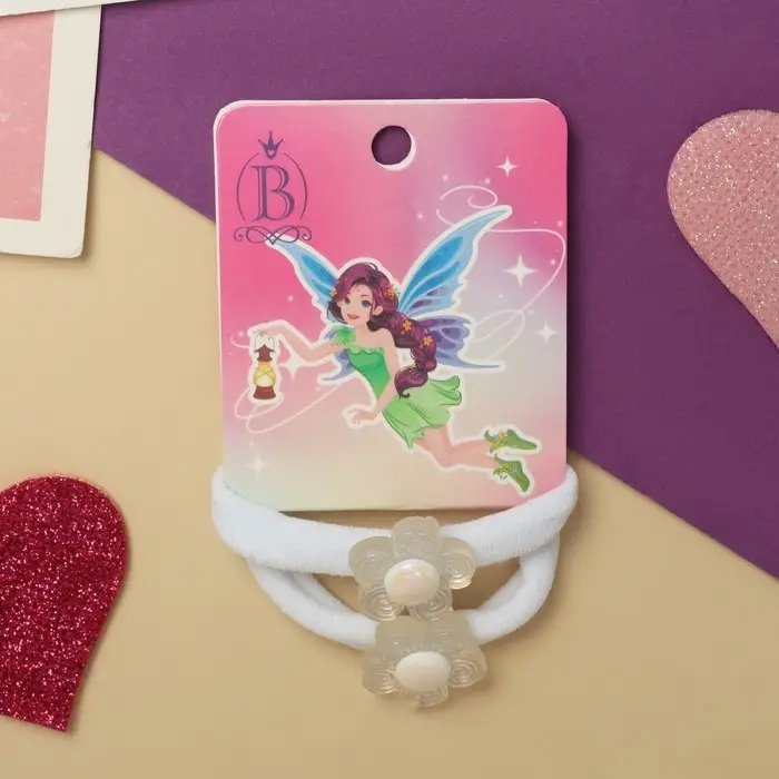 Резинка для волос "Фея" (набор 2 шт) цветочек, 4 см, белый