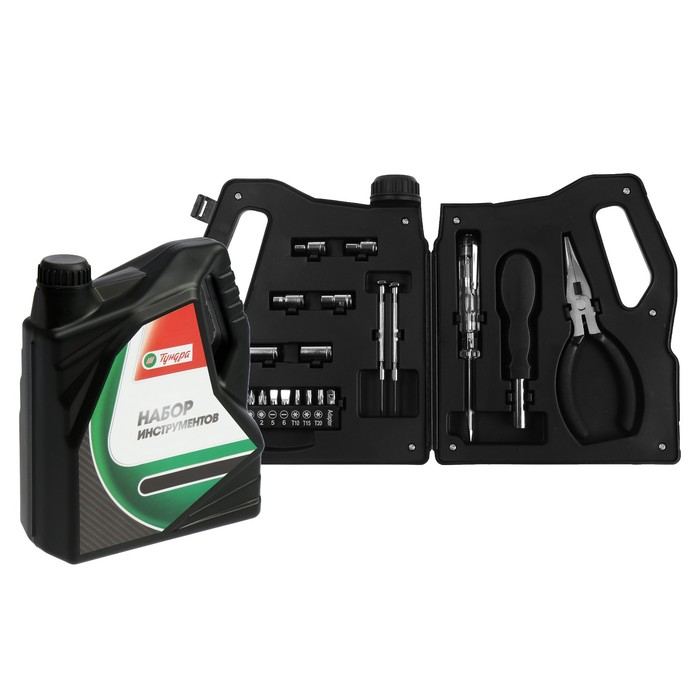 Набор инструментов ТУНДРА, подарочный пластиковый кейс "Канистра", 21 предмет