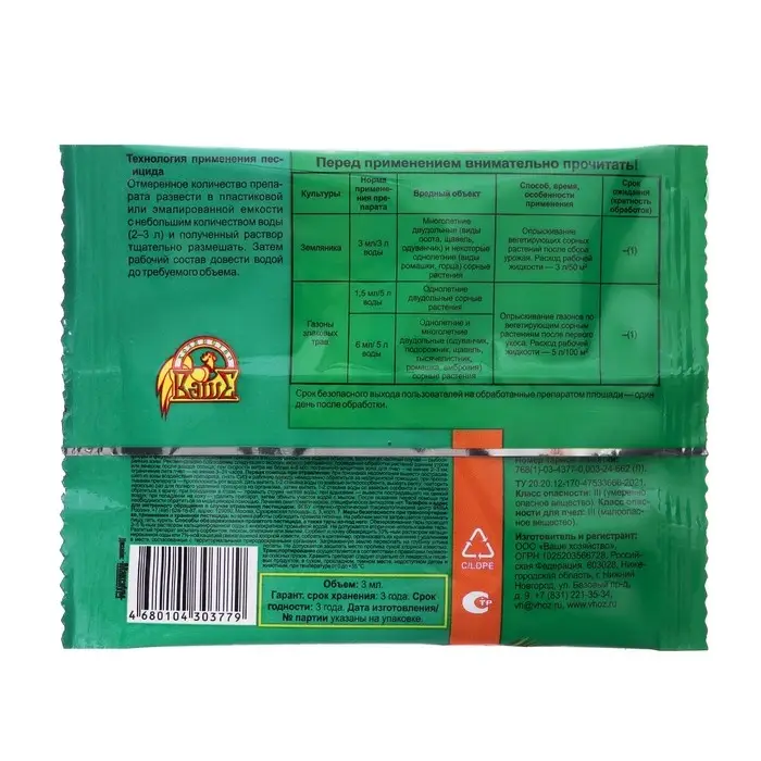 Гербицид для уничтожения сорняков на газоне и землянике «Лорнет», флакон, 12 мл