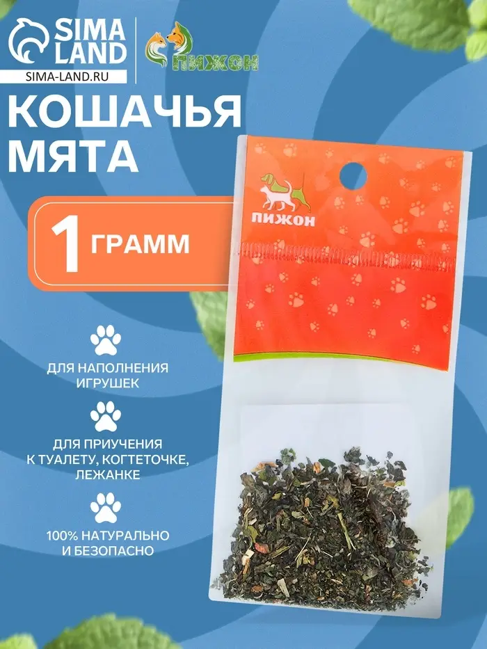 Производитель Пижон предлагает рассыпную мяту, специально разработанную для того, чтобы привлекать внимание кошек и помогать в решении поведенческих проблем. Мята способствует: