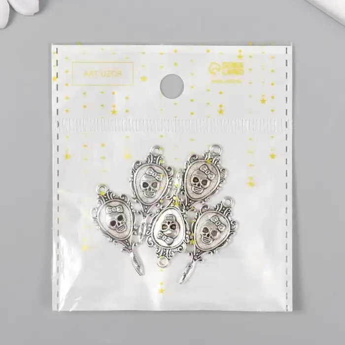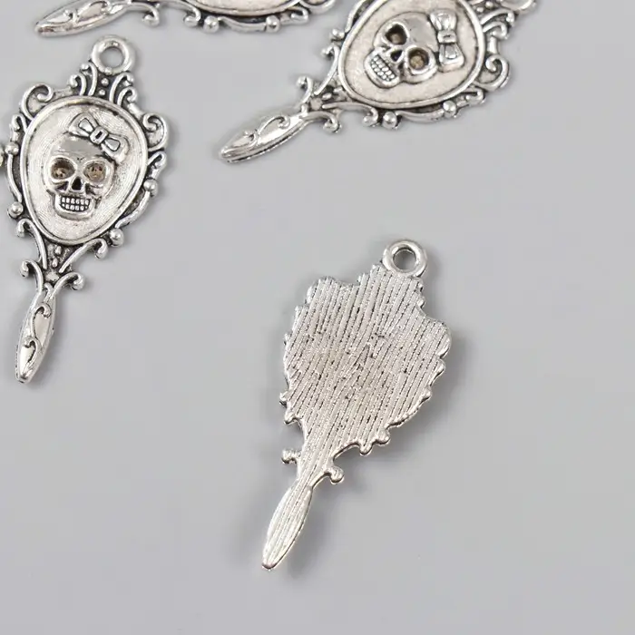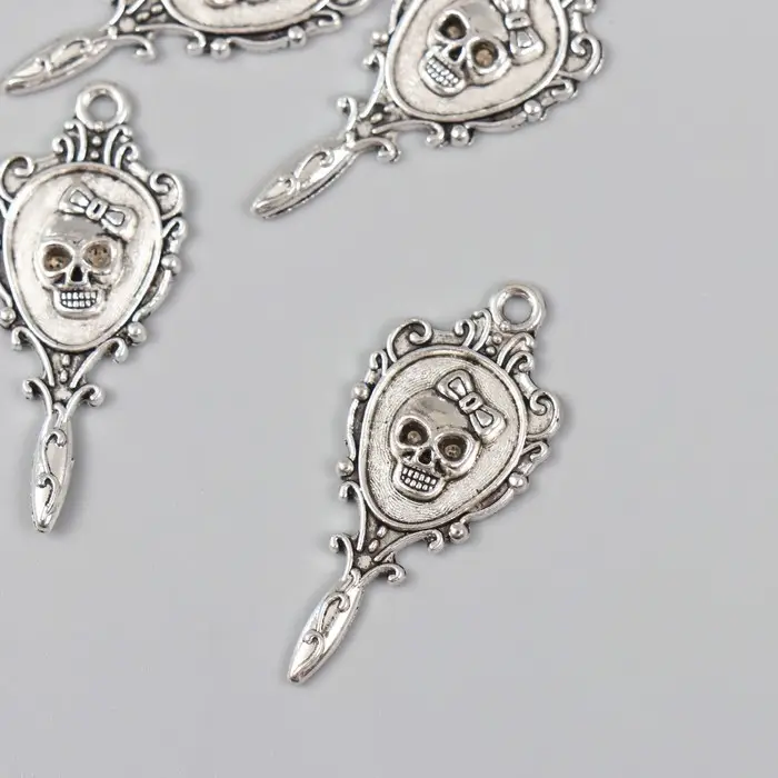 Декор для творчества металл "Ажурное зеркало с черепом" серебро 3,4х1,5 см
