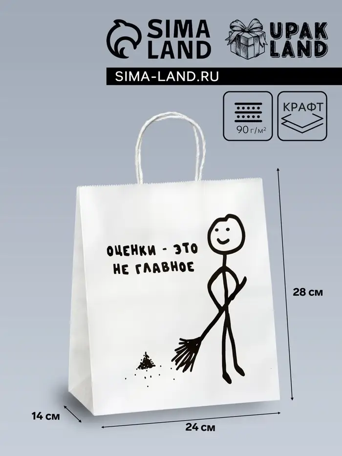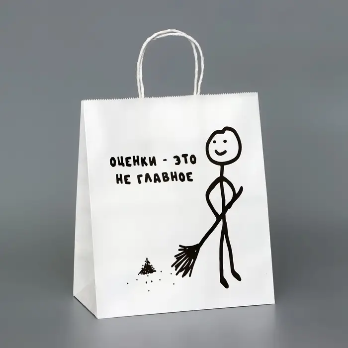 Пакет белый, с приколом, "Оценка - это не главное ", 24×14×28 см