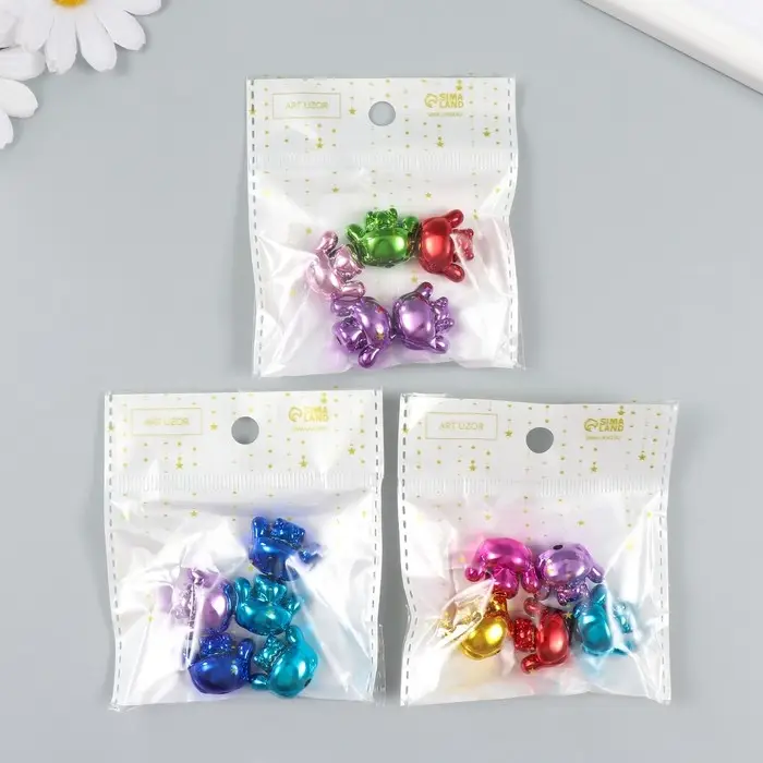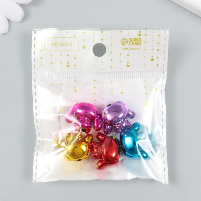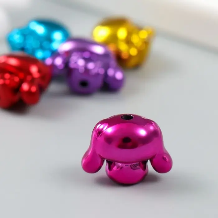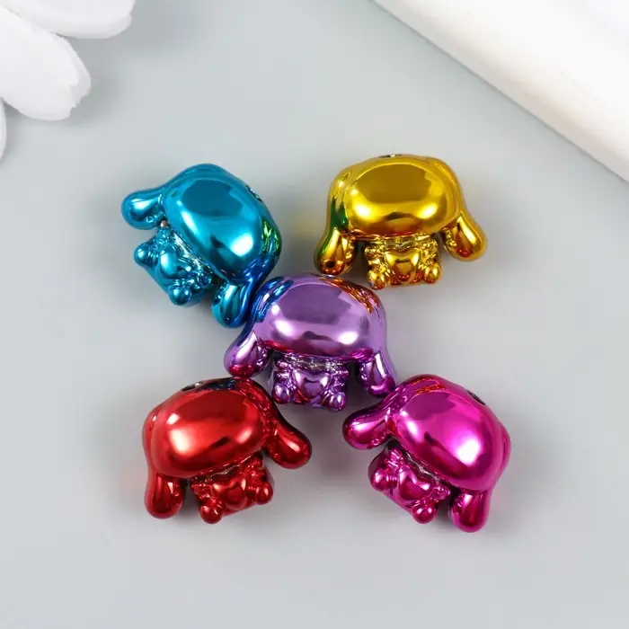 Бусина для творчества пластик "Зайчик глянцевый металлик" МИКС 2,1х1,6х1,3 см