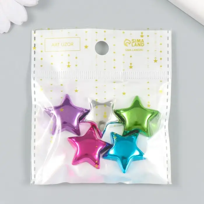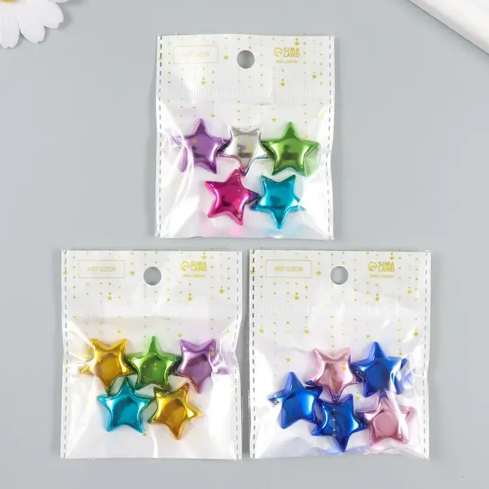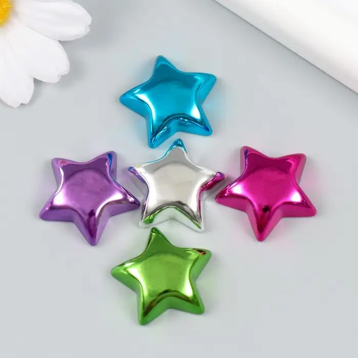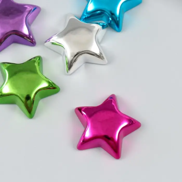Бусина пластик с несквозным отверстием "Звезда глянцевый металлик" МИКС 2,5х2,5х0,7 см