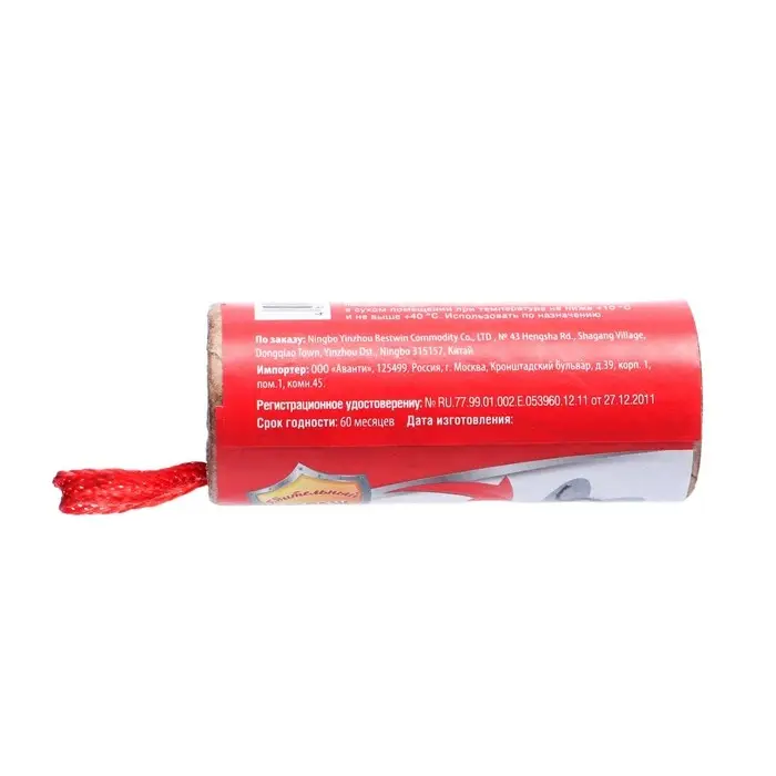 Инсектицидное средство Бдительный страж - липкая лента, представляет собой готовую к применению форму в виде бумажной ленты, в картонном патроне с крышкой, с нанесенной на поверхность ленты липкой клеевой массой, исходя из нормы 3, 75 г ± 0,2 на изделие.СОСТАВСодержит в своем составе: каучук - 52%, производные полиизобутилена - 25%, аттрактант пищевой - 3% и масло минеральное до 100%. Не содержит токсических веществ. СПОСОБ ПРИМЕНЕНИЯЛенту извлечь из упаковки и при легком вращении патрона вытянуть ленту за петлю и закрепить.Перед началом работ определяют численность мух в помещении визуально. В трех помещениях развешивают липкие ленты и подсчитывают количество посадок мух в течение 3-х минут (в среднем более 20 посадок за промежуток времени в три минуты).При обработке помещений ленты развешиваются в местах наибольшего скопления мух. Количество лент зависит от численности мух, но не менее 1 ленты на помещение размером 10 м2.Ленты убирают из помещений после полного загрязнения липкой поверхности.