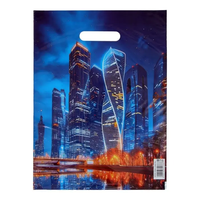 Дизайн пакета с изображением современных небоскрёбов Москва-Сити символизирует динамичное развитие столицы и её статус одного из самых крупных деловых центров мира.