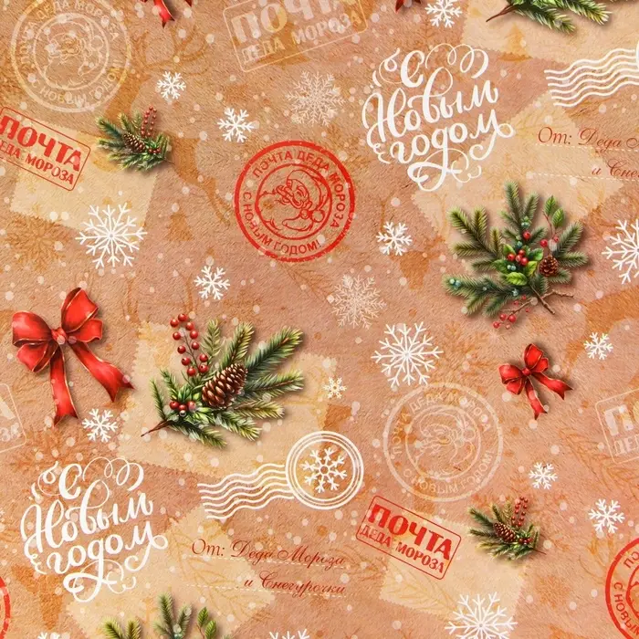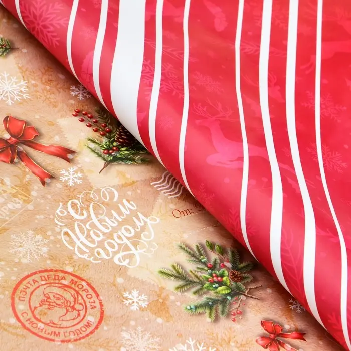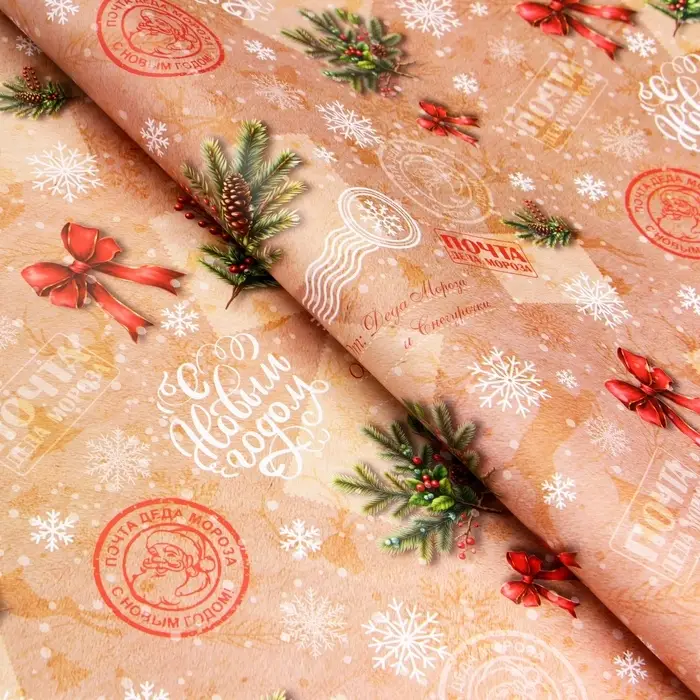 Бумага упаковочная новогодняя «Почта», глянец, двусторонняя, 80 г/м² , 50×70 см