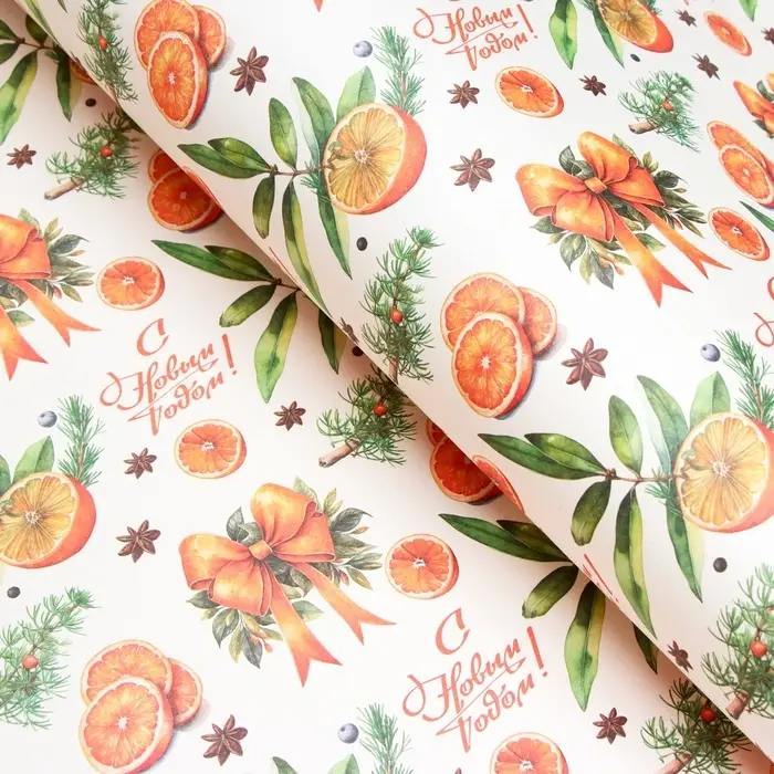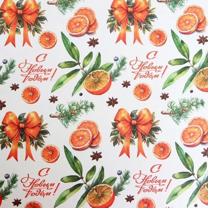 Бумага упаковочная новогодняя «Апельсин и новый год», белый крафт, 80 г/м² , 50×70 см
