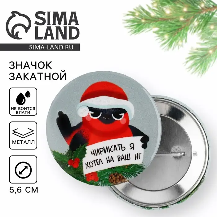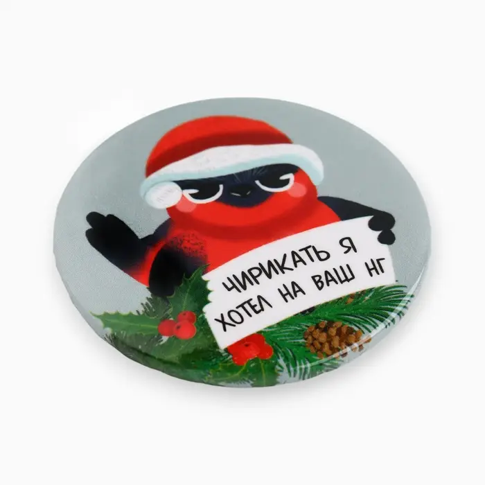 Значок новогодний закатной «Новый год: Новогодний снегирь», d = 5,6 см.