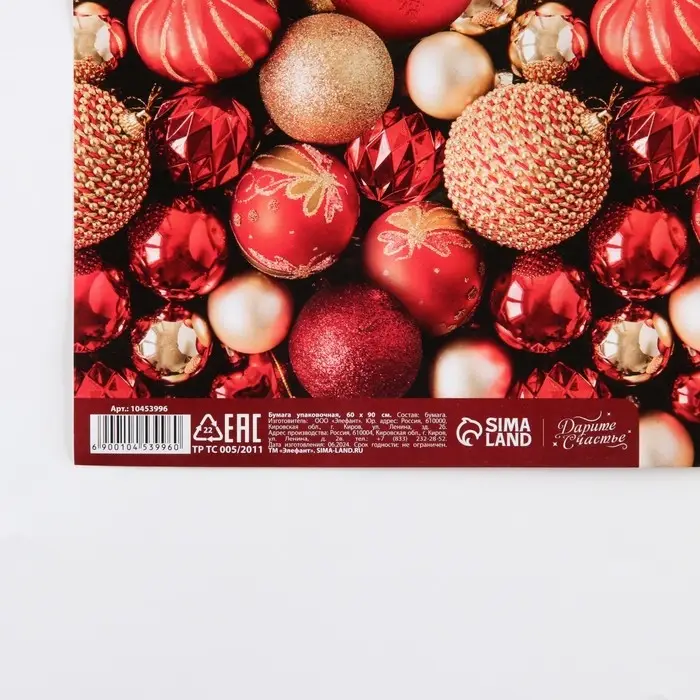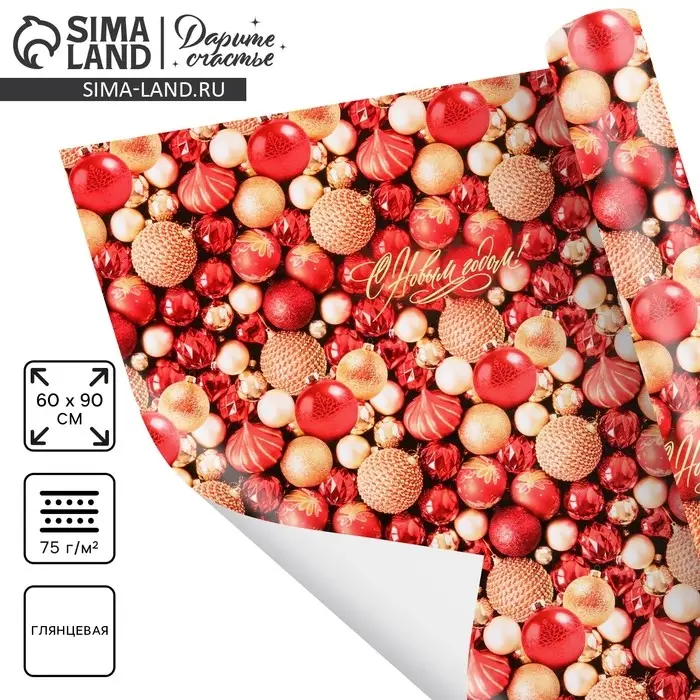 Упаковочная бумага глянцевая «С Новым годом!», 60×90 см