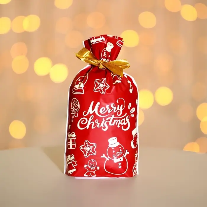 Пакет мешочек полиэтиленовый новогодний с завязками - это стильный и практичный способ упаковки подарков.