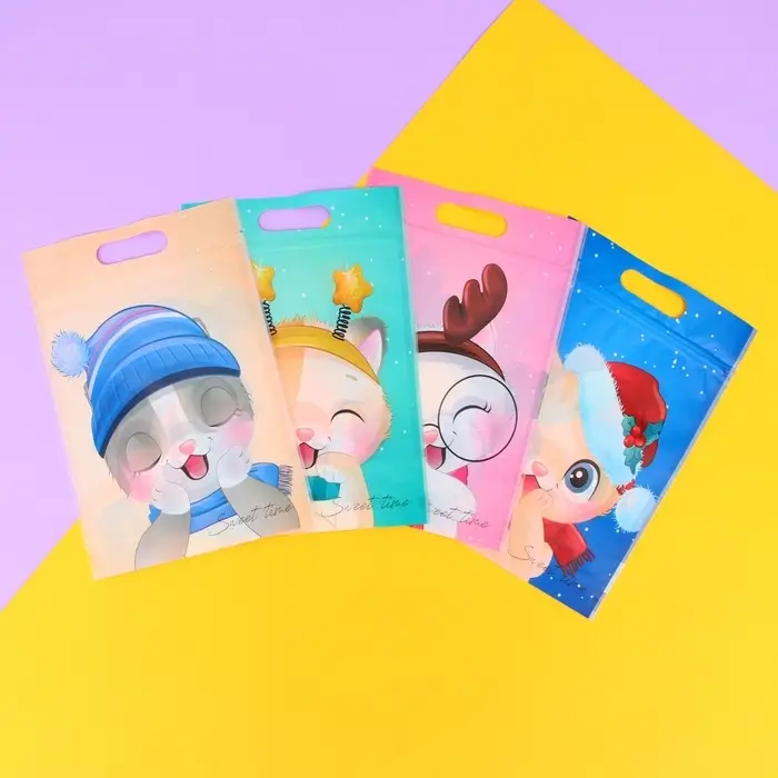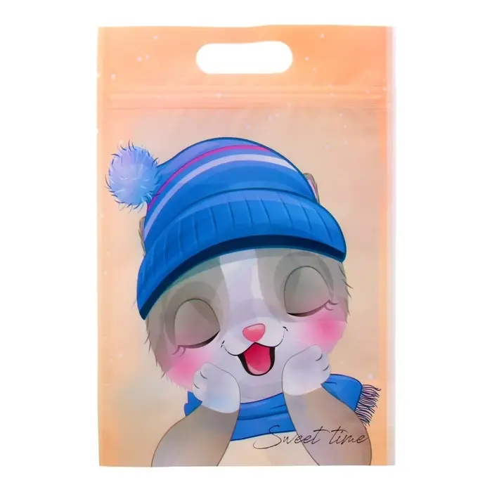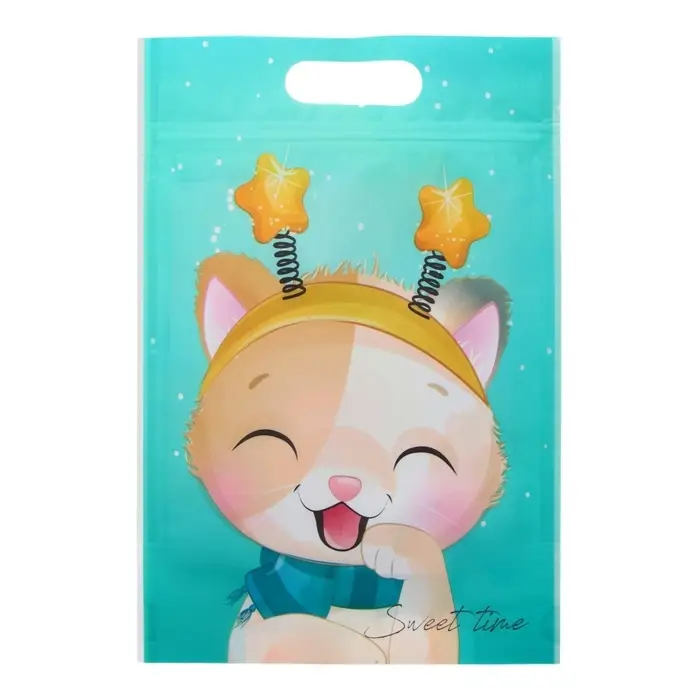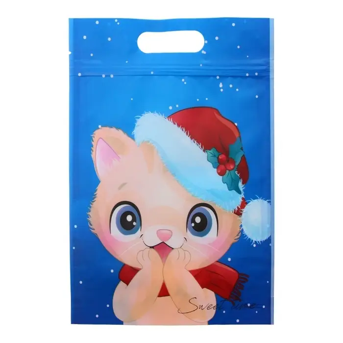 Дизайн пакета с изображением милых зимних котят добавит праздничного настроения и порадует каждого ребенка.