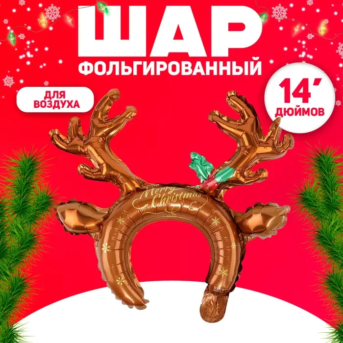 Ободок новогодний воздушный 14" «Рождественский олень»