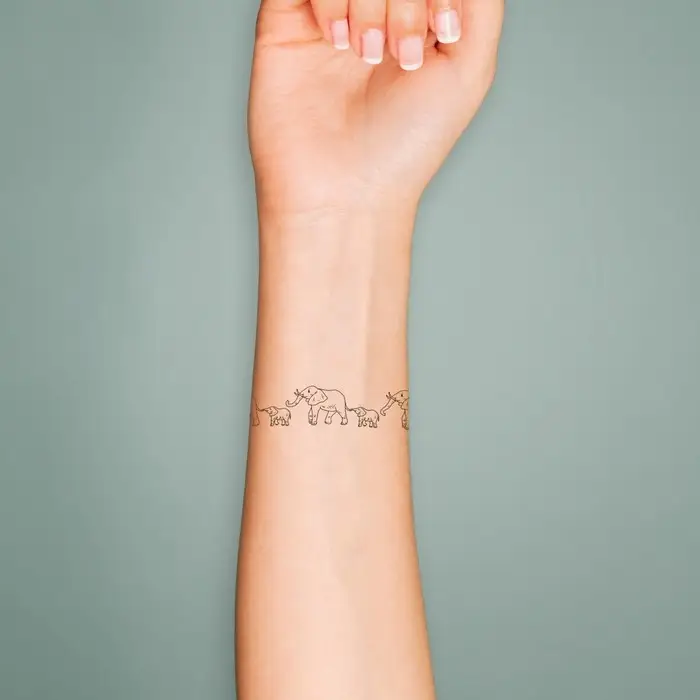Переводная тату на тело чёрная «Браслет. Слоны», 20×3 см