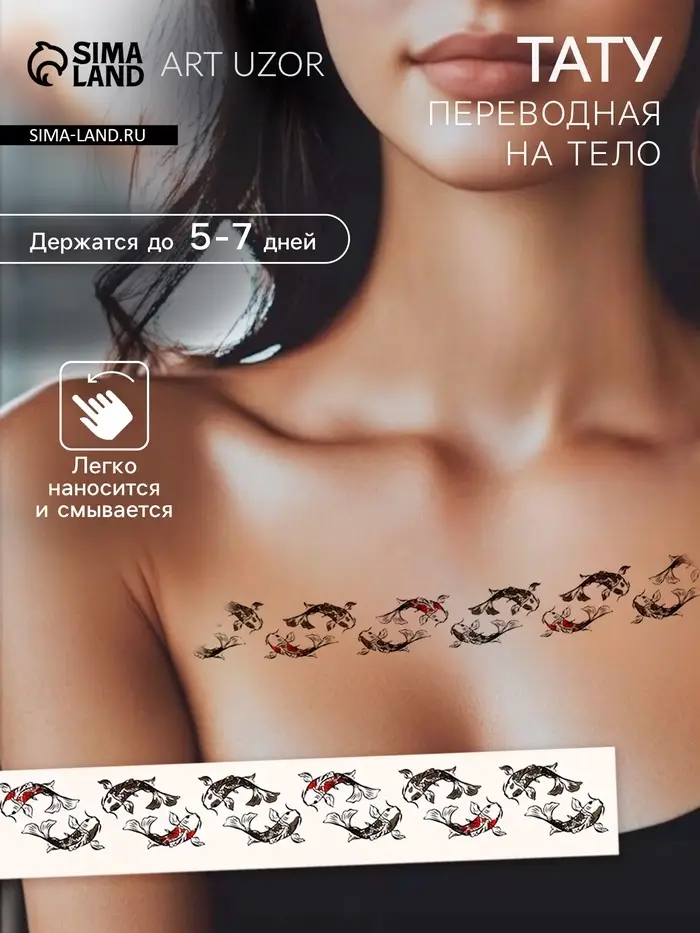 Переводная тату на тело чёрно-красная «Браслет. Рыбы Кои», 20×3 см