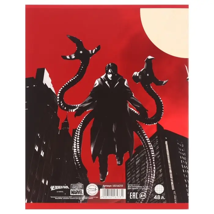 Тетрадь в клетку 48 листов, картонная обложка, серые листы, «Человек-паук»