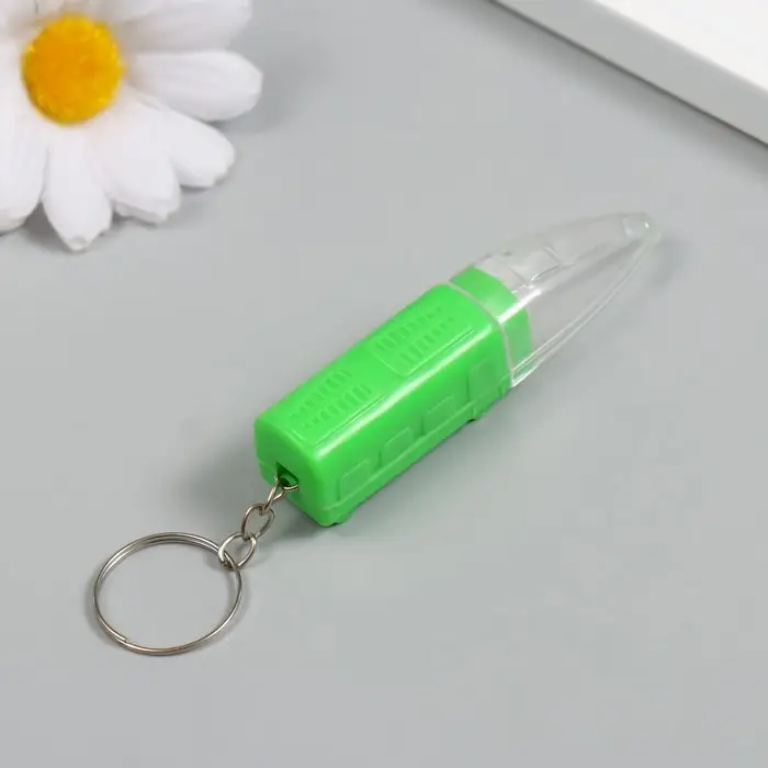 Маленький электропоезд, готовый к отправлению, станет ярким дополнением к вашим ключам. Мигающий свет фонарика позволит легко отыскать ключи в сумерках или темноте. Компактные размеры не займут много места на кольце, а стильный дизайн в виде электропоезда добавит нотку увлекательности в вашу повседневность. Изготовлен из качественного, прочного пластика, рассчитанного на ежедневное использование.