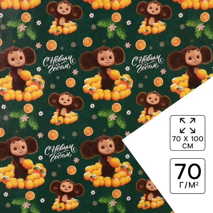 Бумага упаковочная «Новый год» 70 х 100 см, Чебурашка