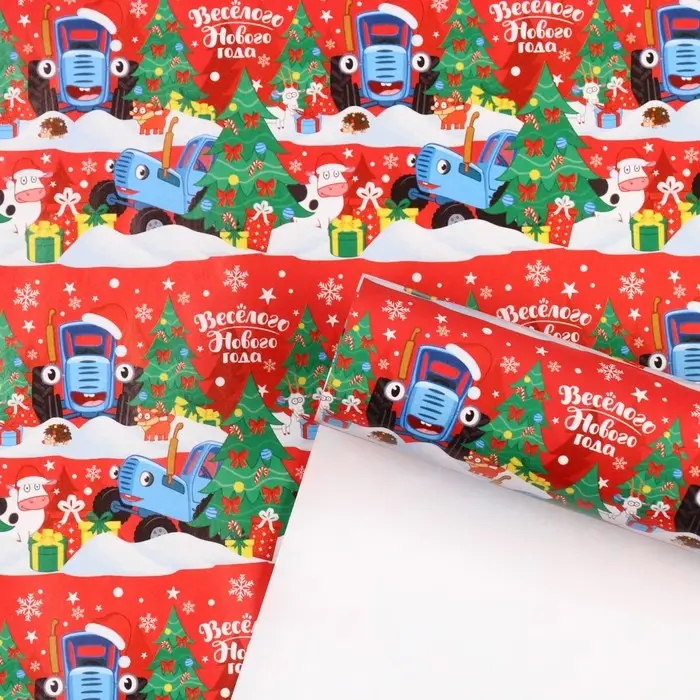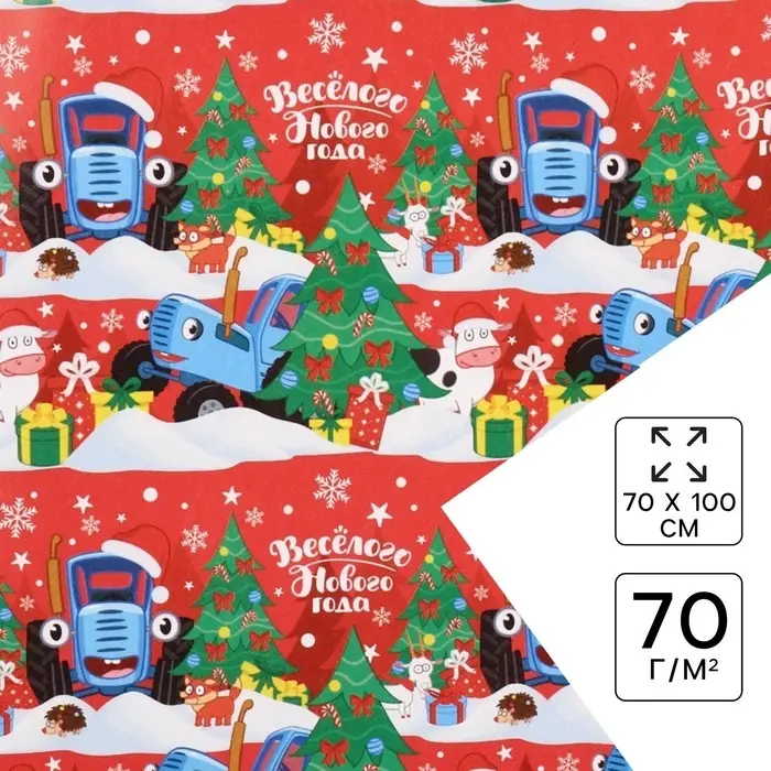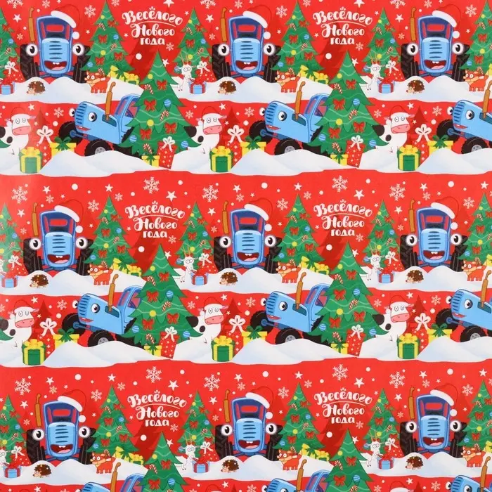 Упаковочная бумага «Весёлого Нового года», 70 х 100 см, Синий трактор