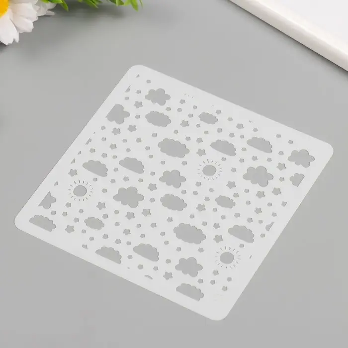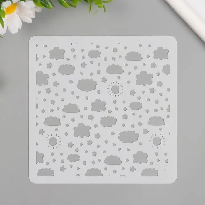 Трафарет фоновый пластик "Солнце облака" 15х15 см