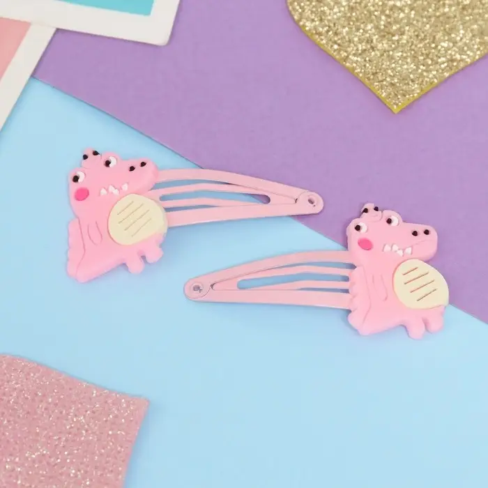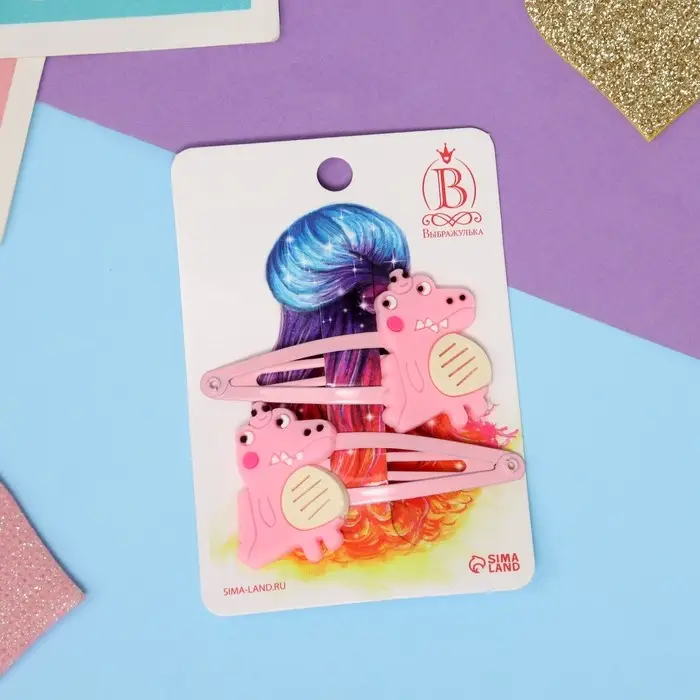 Невидимка для волос "Адель" (набор 2 шт) крокодил, 5,5 см, розовый