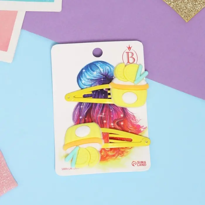 Невидимка для волос "Адель" (набор 2 шт) лимонное лакомство, 5,5 см, жёлтый