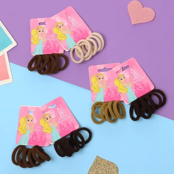 Резинка для волос "Махрушка спорт" (набор 6 шт) полосы диагональ, 2,5 см, коричневые