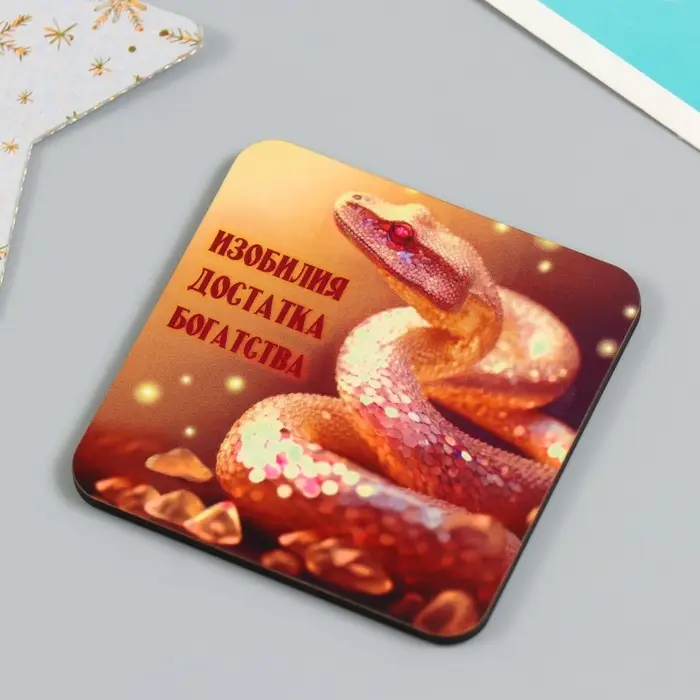 Магнит на холодильник «Золотые змеи», дерево, 7×7 см, 5 видов, МИКС