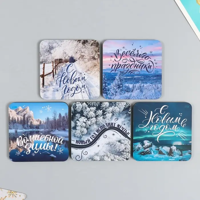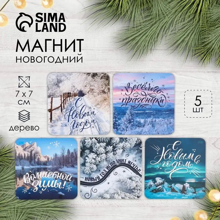 Магнит на холодильник «Зимние пейзажи», дерево, 7×7 см, 5 видов, МИКС