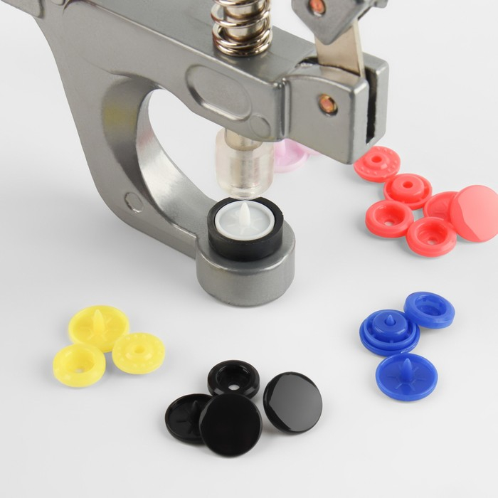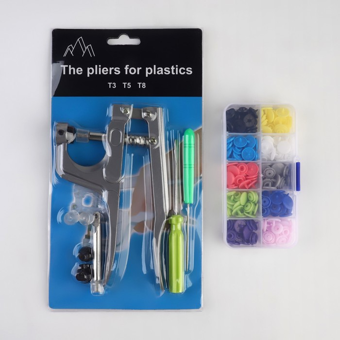 Набор для установки пластиковых кнопок: кнопки, d = 12 мм, 50 шт, щипцы, шило, отвёртка, в органайзере