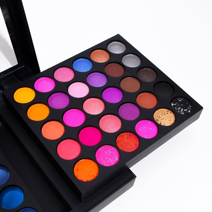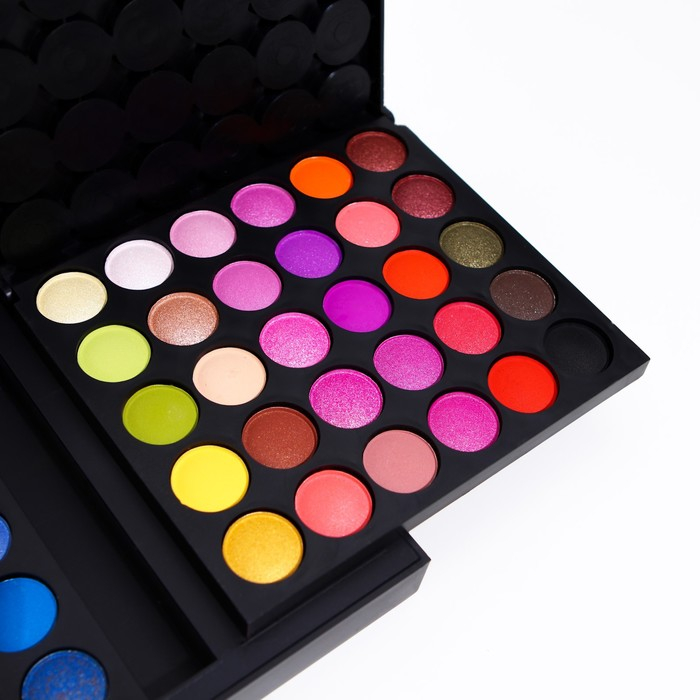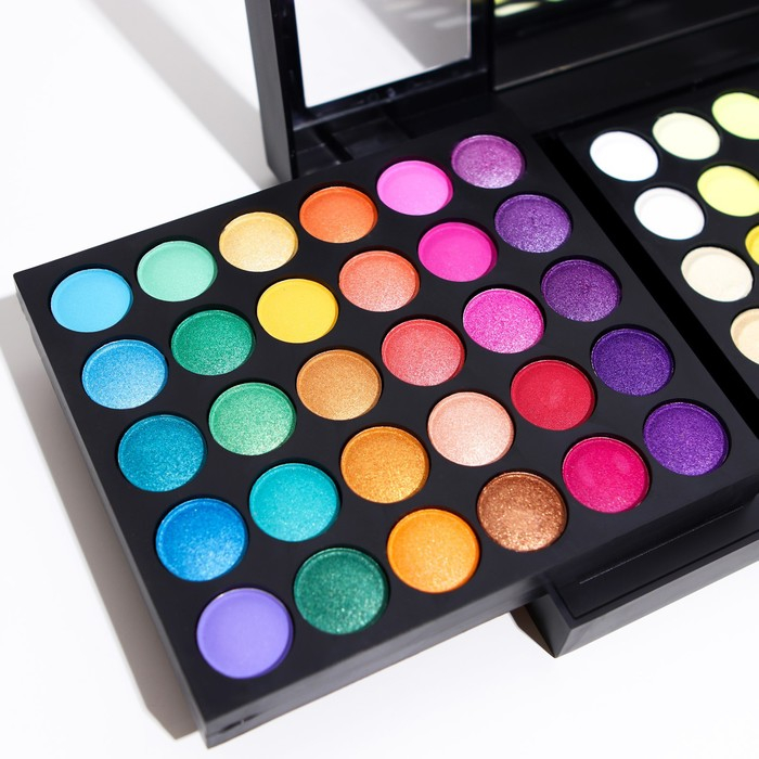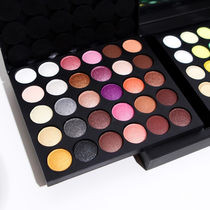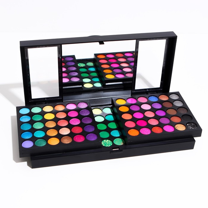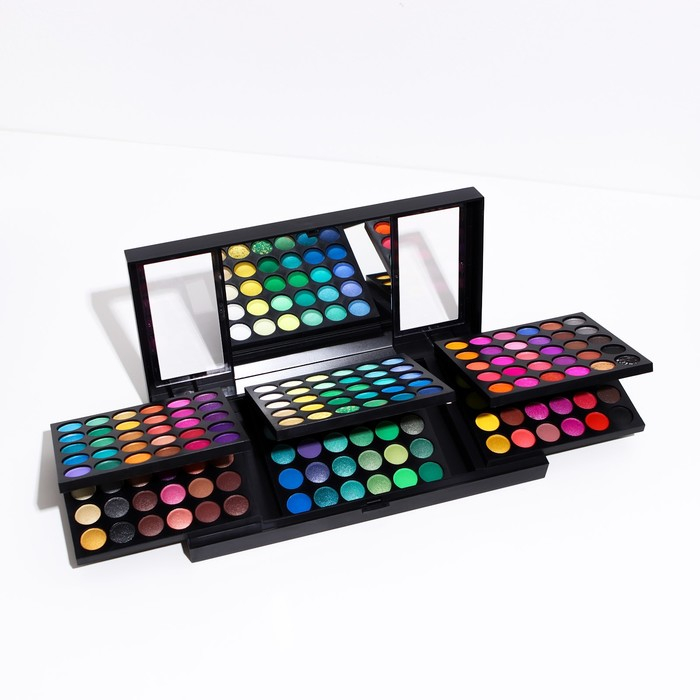 Профессиональный набор теней для отработок всех техник макияжа любой сложности и цветовой гаммы! Всё самое необходимое, чтобы полноценно осваивать искусство макияжа и создавать beauty-шедевры себе и окружающим: 98 оттенков теней (матовые +шиммерные, базовые-тушовочные и яркие, тёплые и холодные).